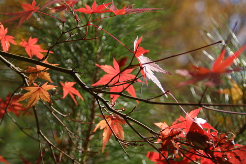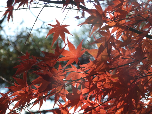 木漏れ日に光るもみじ