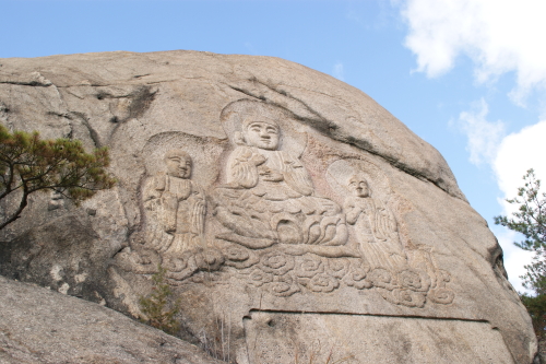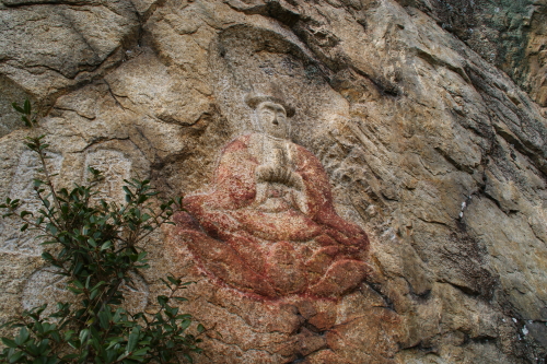 観音堂の脇の岩に やさしい姿の仏様