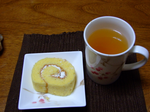柚子茶を入れて 母の手作りのロールケーキで teatime