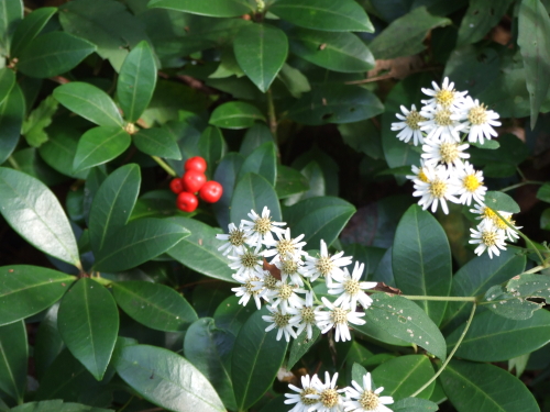 ミヤマシキミと白い野菊
