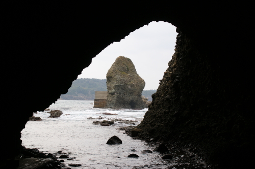 この洞窟には明治の浜田沖地震の犠牲者を弔った祠がある