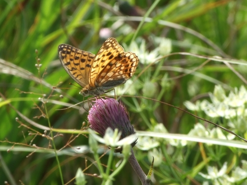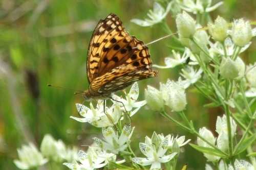 アケボノソウにはウラギンヒョウモン