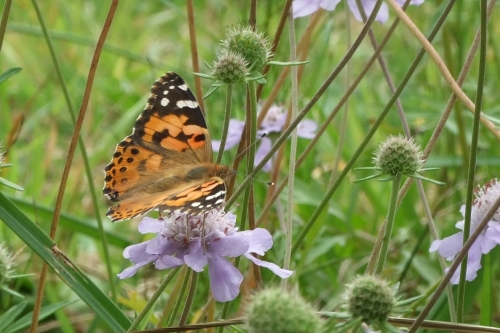 マツムシソウにやってきたのは ヒメアカタテハ