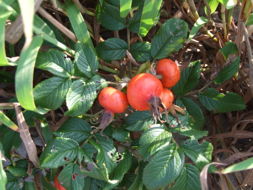 ハマナスの赤い実も熟れて
